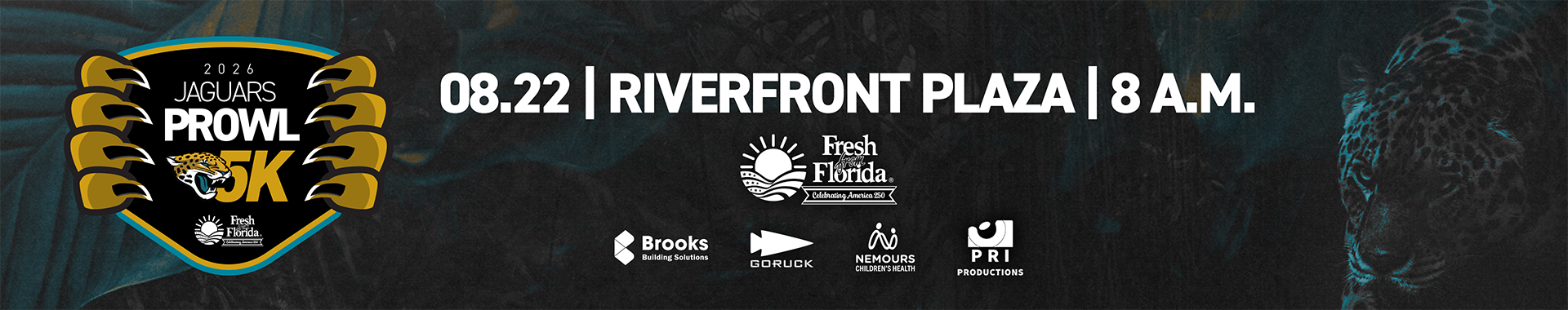 Join the Jaguars and Fresh from Florida for the Jaguars Prowl 5K to support the Jacksonville Jaguars Foundation and local youth sports programs. The race is taking the place of the annual stadium challenge, and due to construction at EverBank Stadium, the modified course will include starting at the new Riverfront Plaza and continue through the heart of Jacksonville!