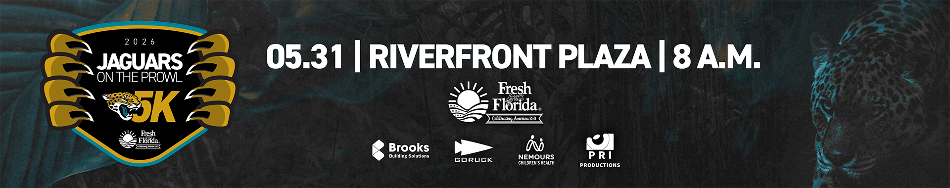 Join the Jaguars and Fresh from Florida for the On the Prowl 5K to support the Jacksonville Jaguars Foundation and local youth sports programs. The race is taking the place of the annual stadium challenge but due to construction at EverBank Stadium, the modified course will include starting at the new Riversfront Plaza and continue through the heart of Jacksonville! More details to come.